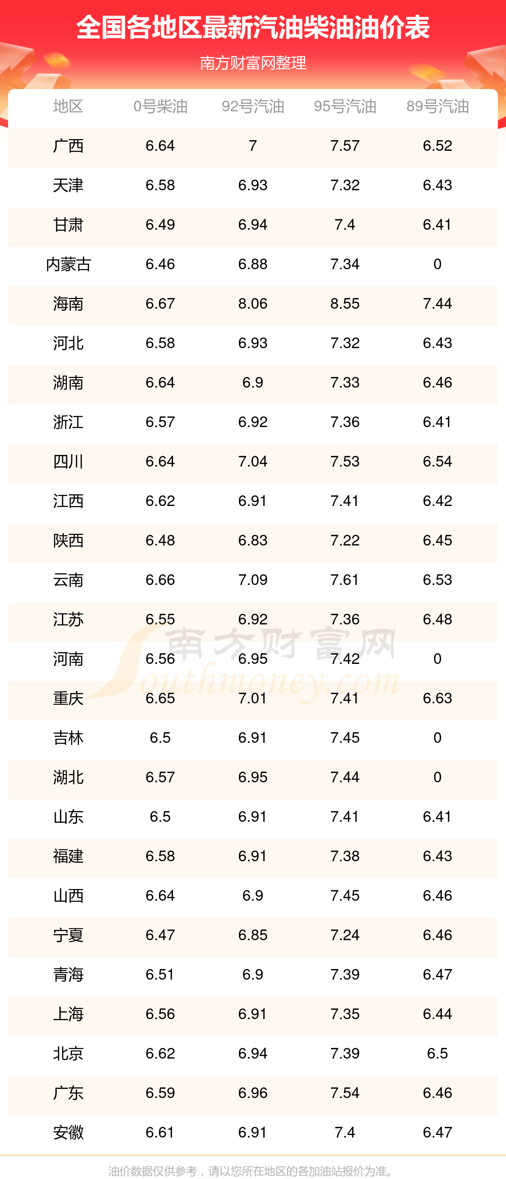 按11月11日0号柴油最新调整价格6.49元每升来计算(以甘肃为例),该车型百公里平均油费为62.758元,按上一轮10月28日调整价格6.39元每升来计算,百公里平均油费为61.791元,对比上一轮多花0.967元,下一轮油价调整时间为11月24日24时。
