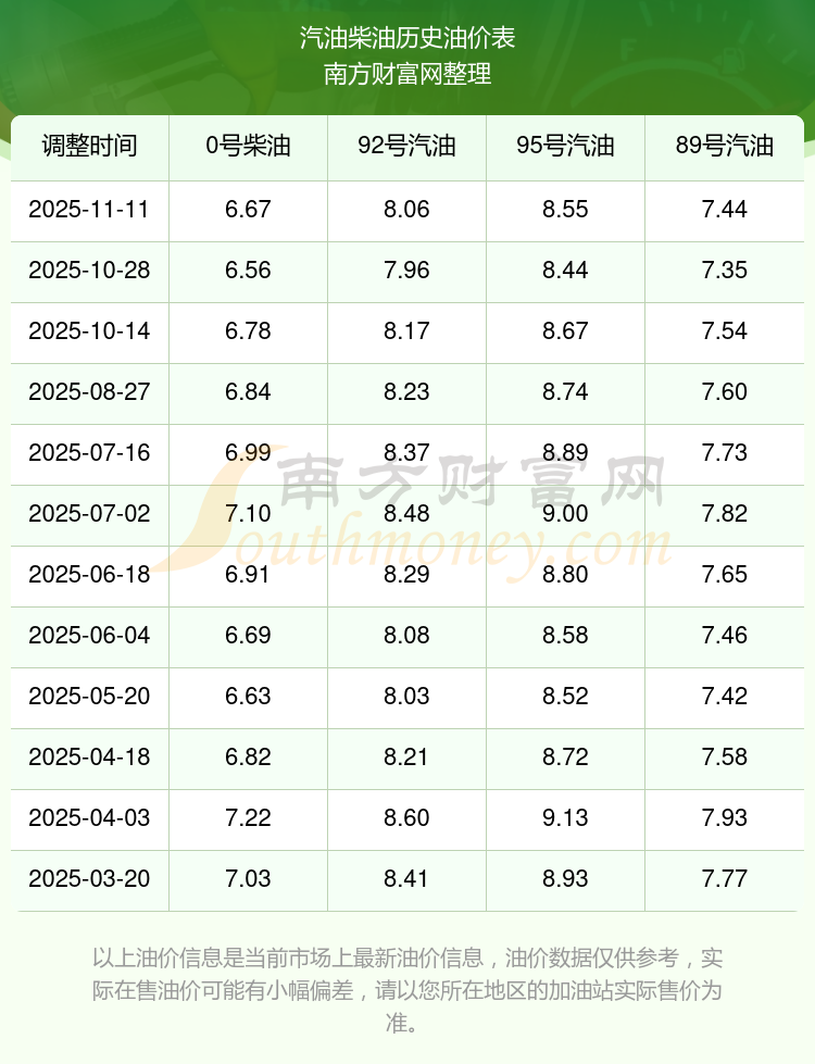 2025年95号汽油价格一览表