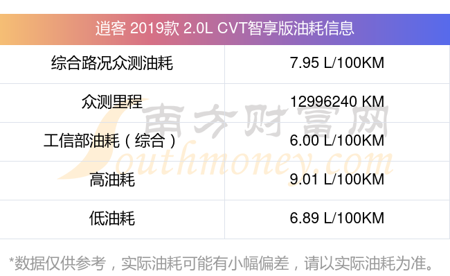 根据多位车主实测得出数据,该车型低油耗为6.89升每百公里,高油耗为9.01升每百公里,综合路况众测油耗为7.95升每百公里,工信部综合油耗为6.00升每百公里。