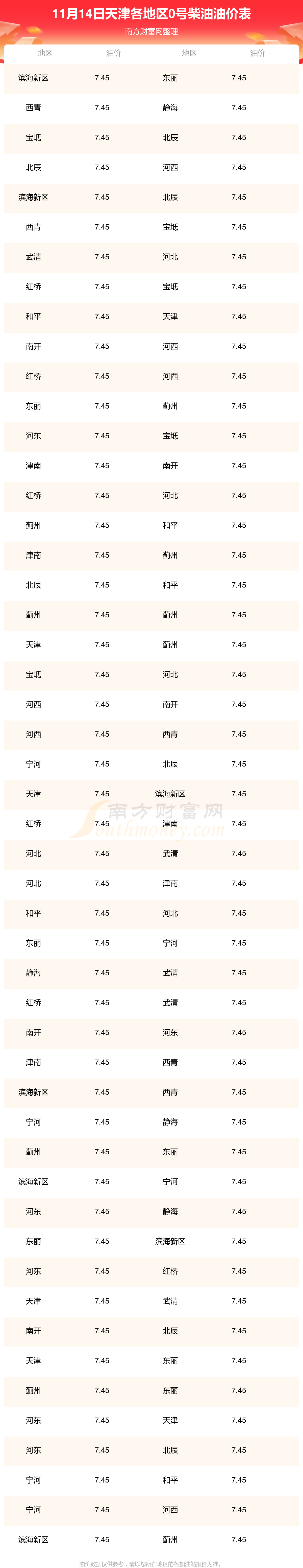 2025年11月14日天津0号柴油最新价格一览表