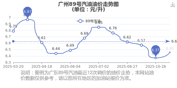 油价调整最新消息:11月14日,广州汽油、柴油每升的价格是多少?本次油价调整时间是11月11日,92号汽油为6.96元,上涨了0.1元,上涨幅达1.46%;95号汽油为7.54元,上涨了0.11元,上涨幅达1.48%;89号汽油为6.46元,上涨了0.09元,上涨幅达1.41%;0号柴油为6.59元,上涨了0.1元,上涨幅达1.54%。广州下一轮油价调整时间11月24日24时,距离现在还有10.63天。