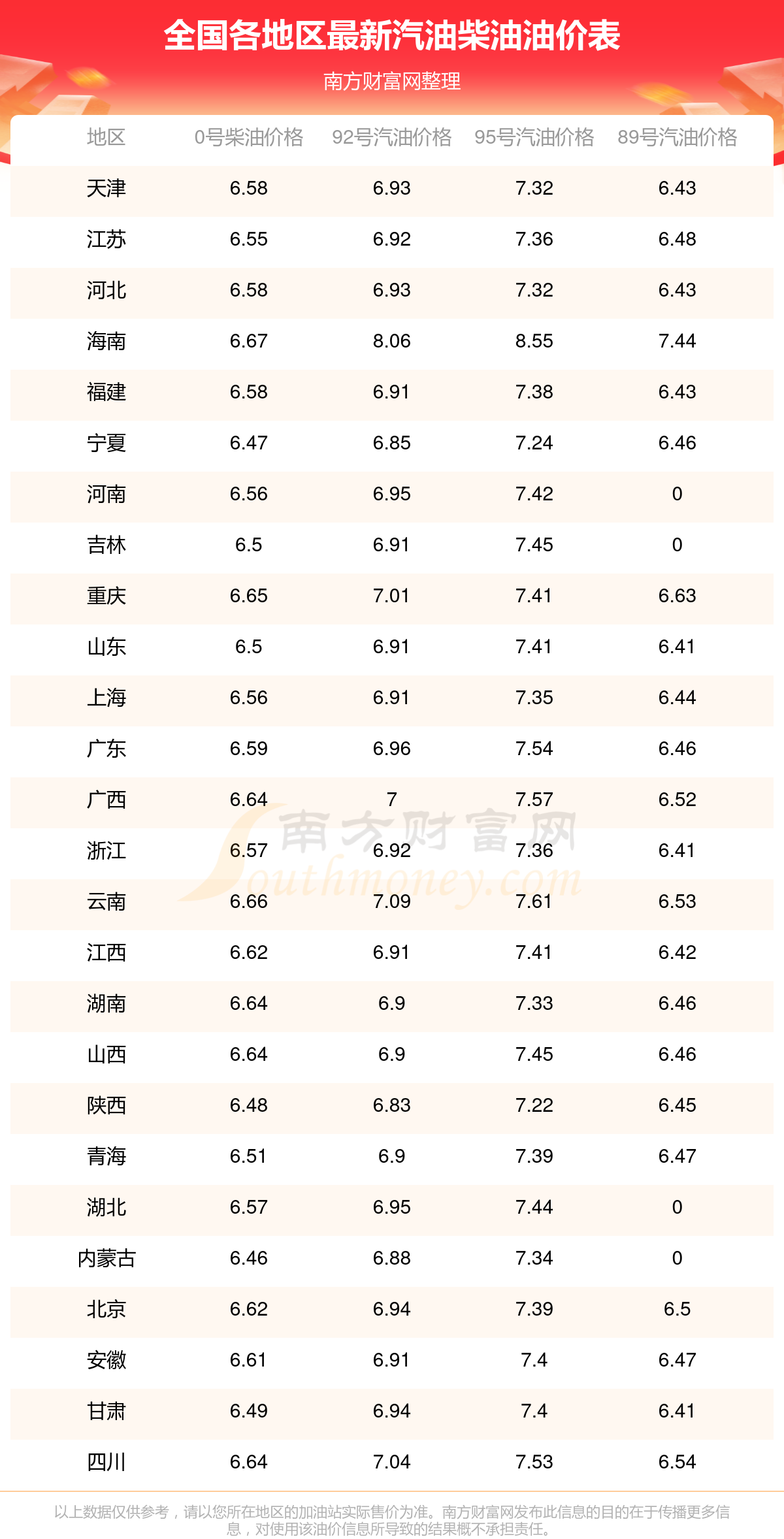 油价数据仅供参考,请以您所在地区的各加油站报价为准。