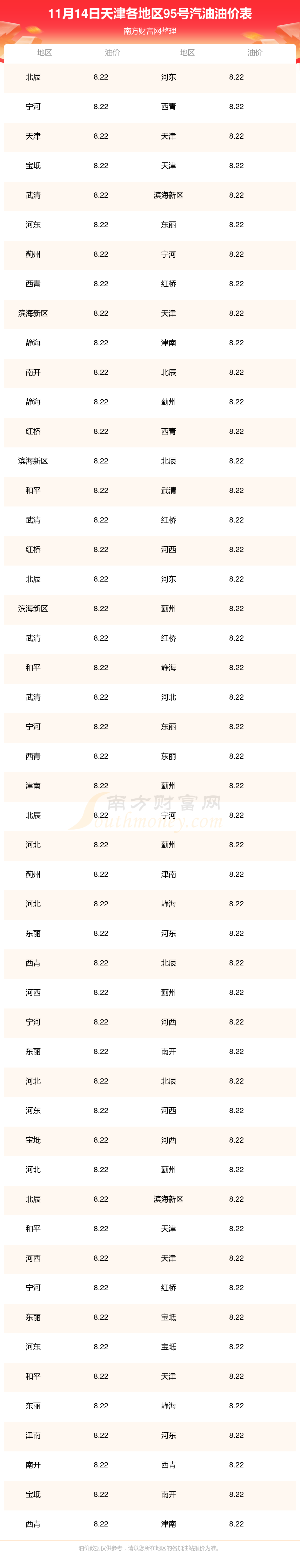 2025年11月14日天津95号汽油最新价格一览表