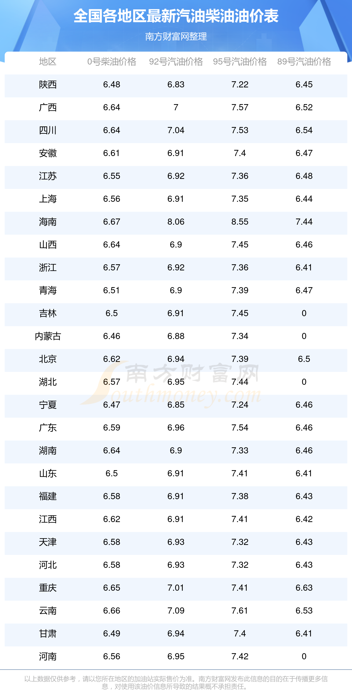 本站提供的油价数据仅供参考,具体数据以加油站报价为准。