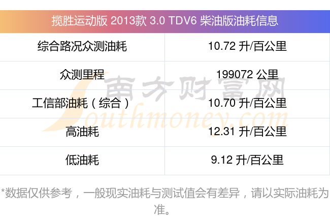 根据车主实测数据,该车型低油耗为9.12升每百公里,高油耗为12.31升每百公里,综合路况众测油耗为10.72升每百公里,工信部综合油耗为10.70升每百公里。