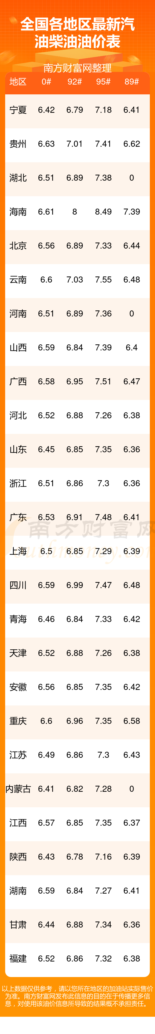 本站提供的油价数据仅供参考,具体数据以加油站报价为准。