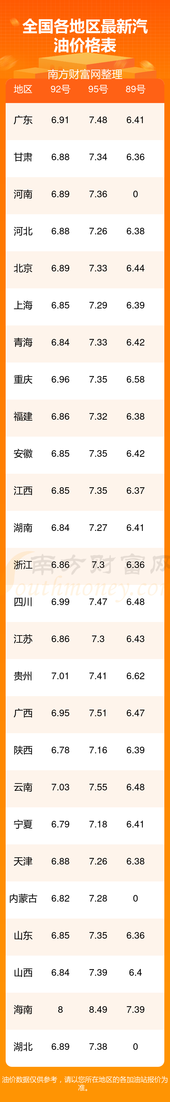 2025年12月5日全国各地汽油价格调整时间及价格一览表