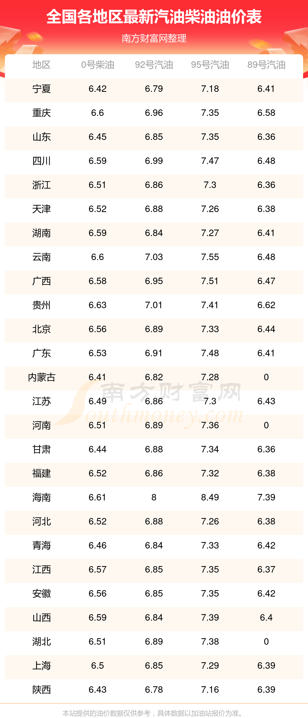 本次油价调整的时间为11月25日 ,调整后全国油价详情如下: