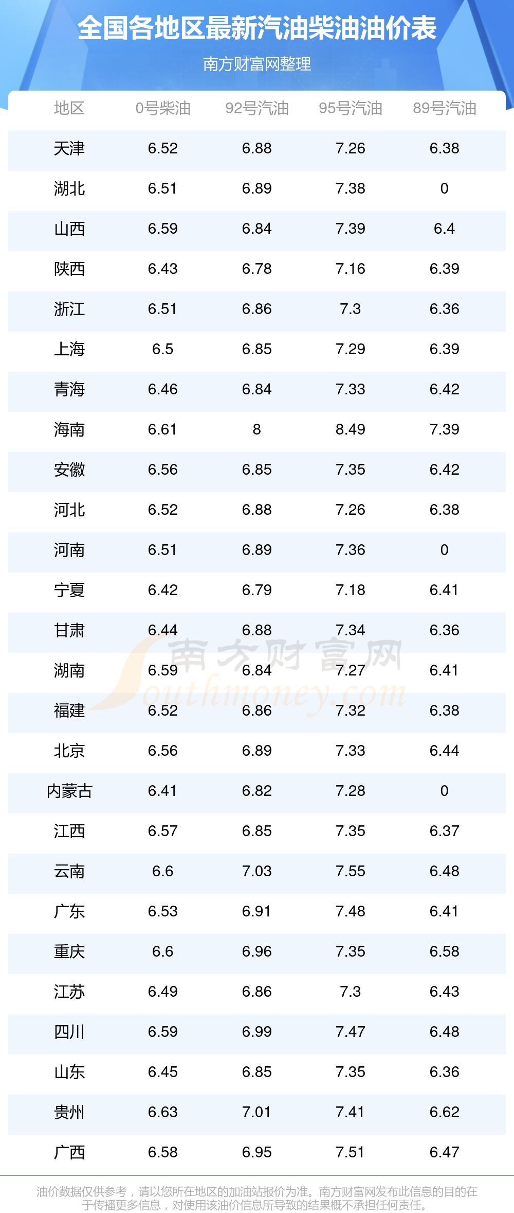 全国95号汽油最新平均价格为:7元每升,其中,最低为陕西,价格为7.16元/升,最高为海南,价格为8.49元/升。
