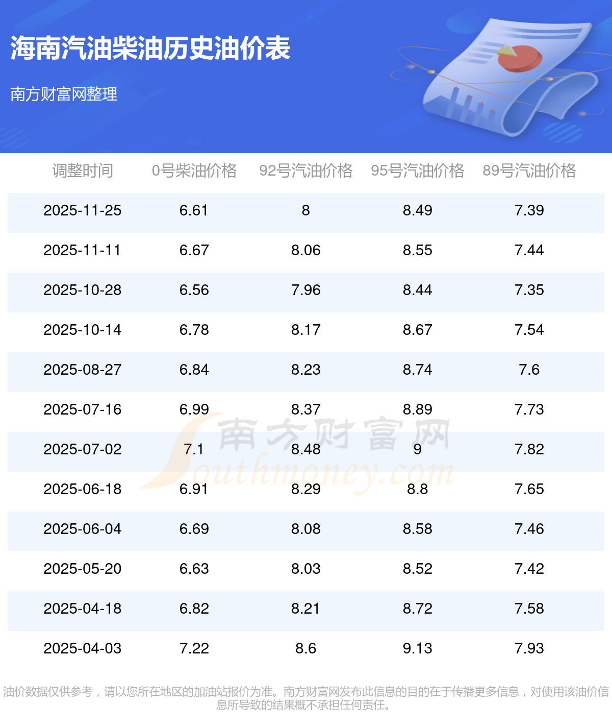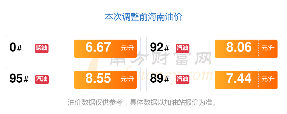 海南92号汽油油价调整表