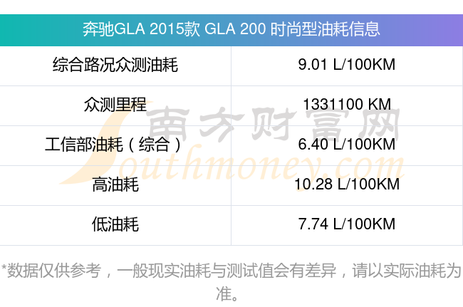 奔驰GLA 2015款 GLA 200 时尚型搭载了一台1.6T156马力L4涡轮增压发动机,采用7挡双离合自动档变速箱,常规整备质量1482kg,厂家参考价28.98万元。