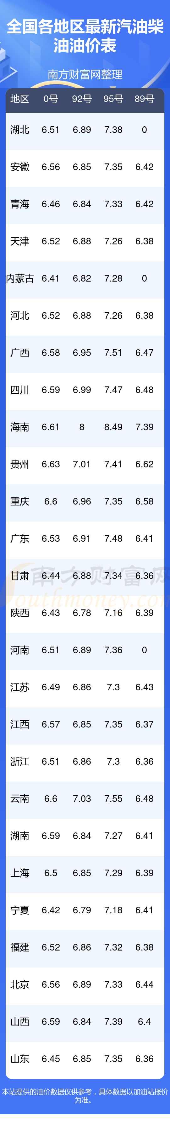 油价数据仅供参考,请以您所在地区的加油站报价为准。南方财富网发布此信息的目的在于传播更多信息,对使用该油价信息所导致的结果概不承担任何责任。