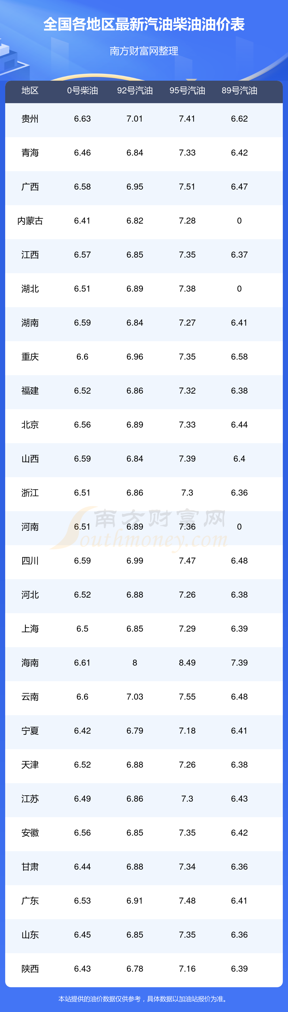 12月6日全国92、95汽油最新价格表