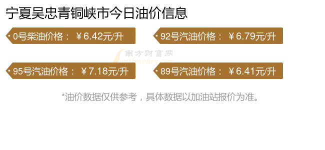 12月6日宁夏吴忠青铜峡市汽油、柴油价格是多少钱一升?11月25日油价调整后,每升油价为:92号汽油为6.79元,下降了0.06元,下降幅达0.88%;95号汽油为7.18元,下降了0.06元,下降幅达0.83%;89号汽油为6.41元,下降了0.05元,下降幅达0.77%;0号柴油为6.42元,下降了0.05元,下降幅达0.77%。