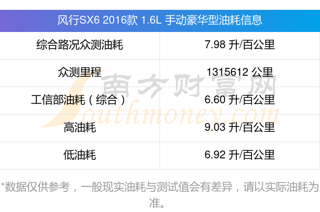 数据仅供参考,一般现实油耗与测试值会有差异,请以实际油耗为准。