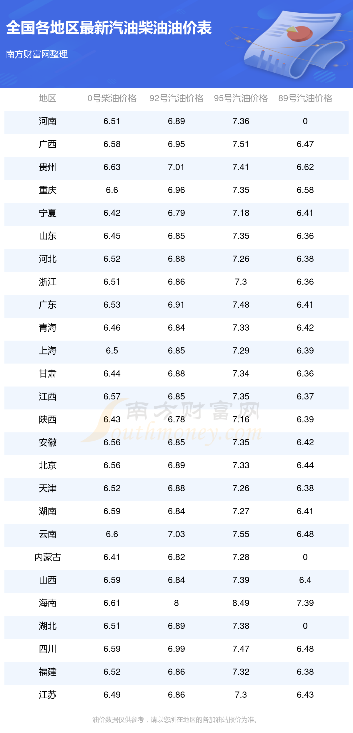 本站提供的油价数据仅供参考,具体数据以加油站报价为准。