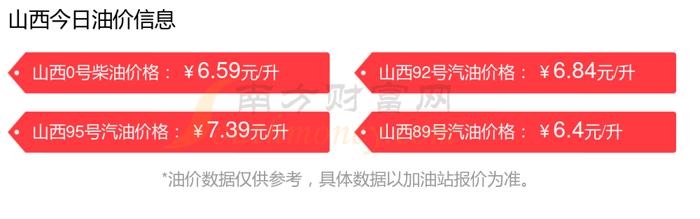 汽油价格调整最新消息:下一轮油价调整时间12月8日24时。山西汽油、柴油12月6日每升最新价格查询:本轮油价调整时间为11月25日,92号汽油6.84元,下降了0.06元;95号汽油7.39元,下降了0.06元;89号汽油6.4元,下降了0.06;0号柴油6.59元,下降了0.05元。