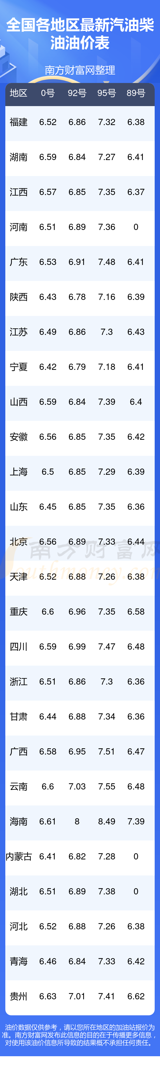 全国95号汽油平均价格为:7元每升,其中,最低为陕西,价格7.16元/升,最高为海南,价格8.49元/升。