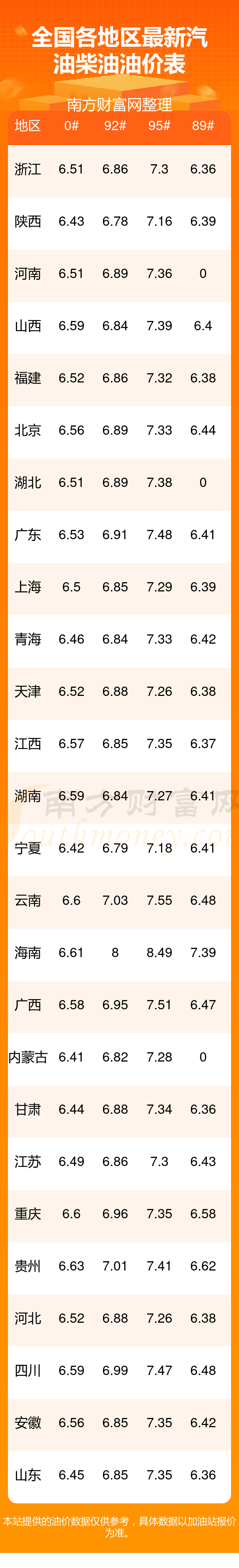 本站提供的油价数据仅供参考,具体数据以加油站报价为准。