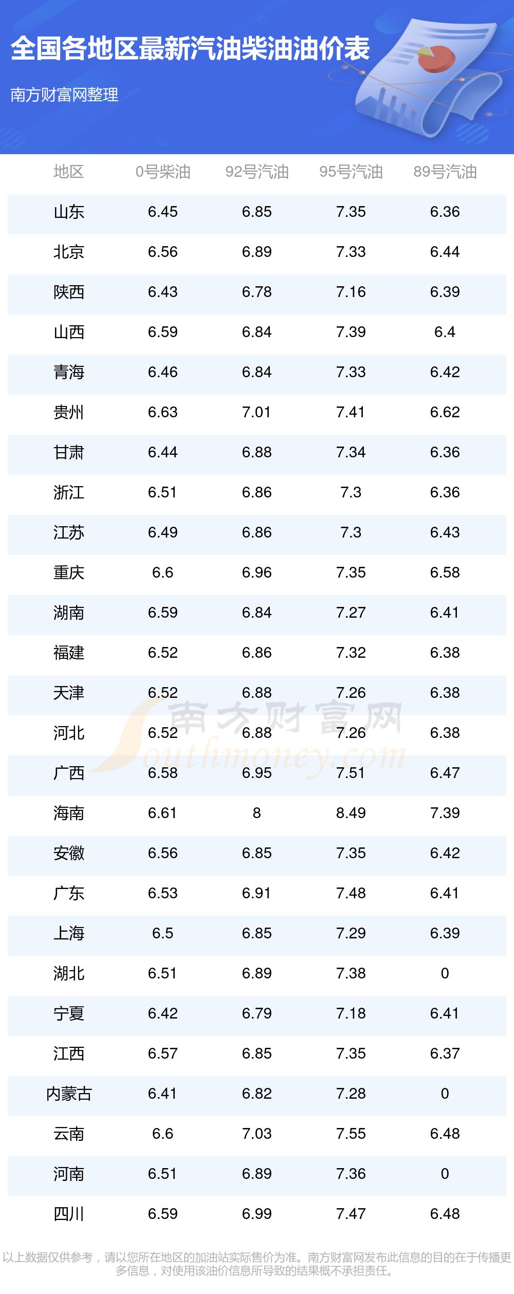 本次油价调整的时间为11月25日 ,调整后全国油价详情如下: