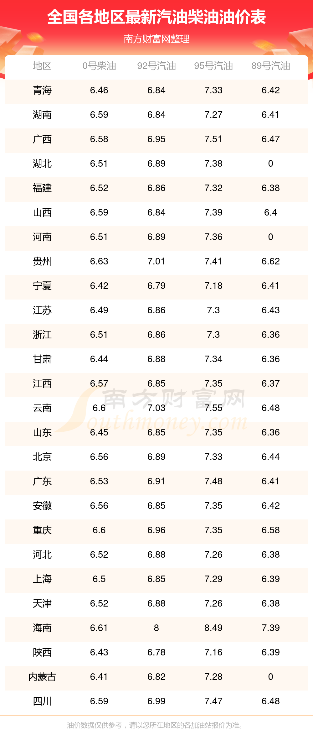 本站提供的油价数据仅供参考,具体数据以加油站报价为准。
