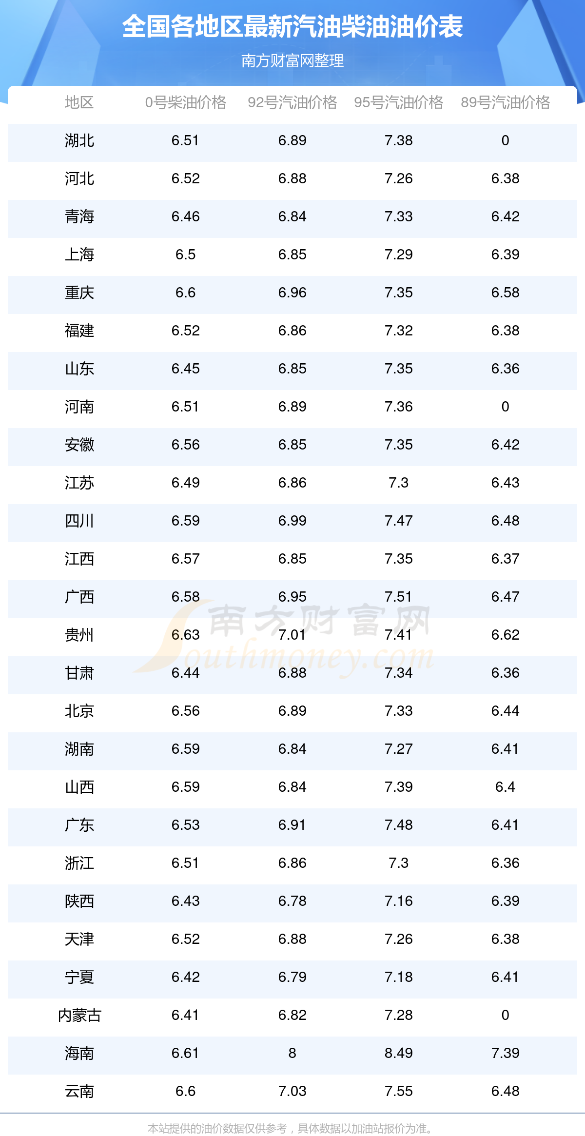 本站提供的油价数据仅供参考,具体数据以加油站报价为准。