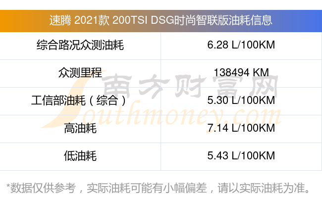 根据多位车主实测得出数据,该车型低油耗为5.43L/100km,高油耗为7.14L/100km,综合路况众测油耗为6.28L/100km,工信部综合油耗为5.30L/100km。