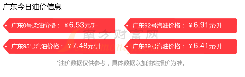 油价数据仅供参考,请以您所在地区的加油站报价为准。南方财富网发布此信息的目的在于传播更多信息,对使用该油价信息所导致的结果概不承担任何责任。