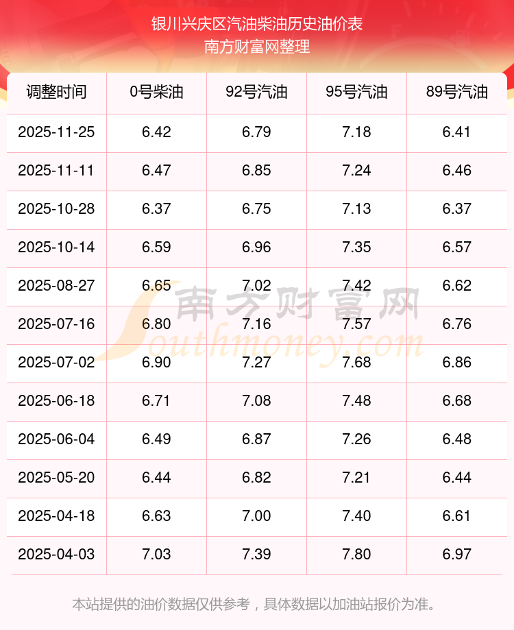 2025年银川兴庆区油价调整时间表