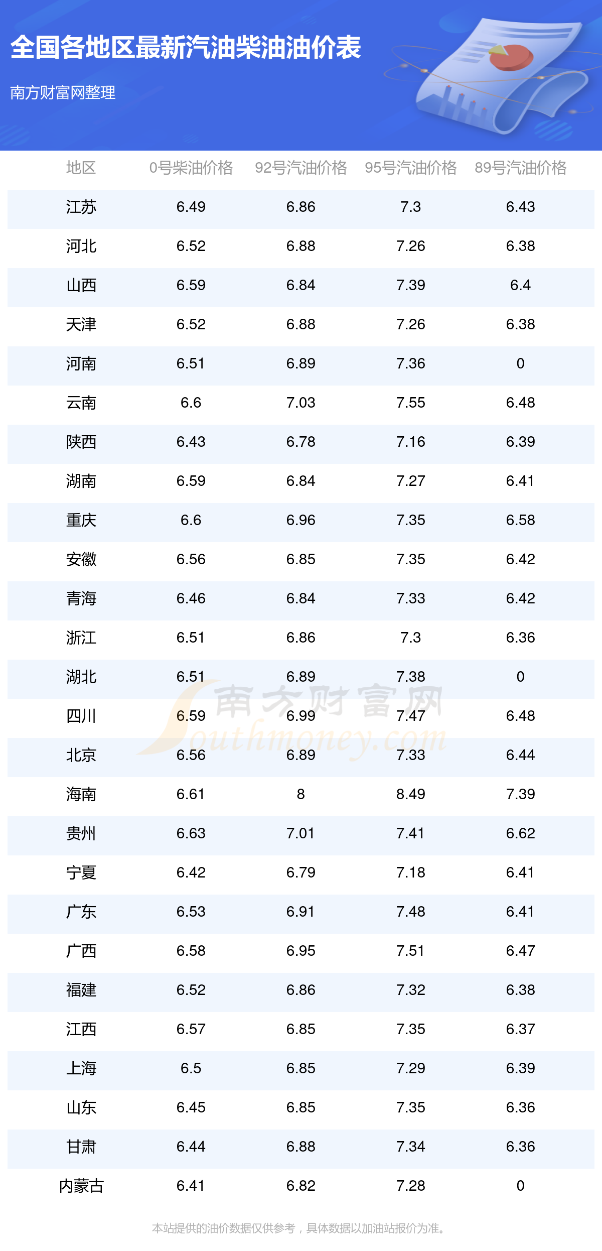 本轮油价调整时间为11月25日 ,调整后全国油价详情为: