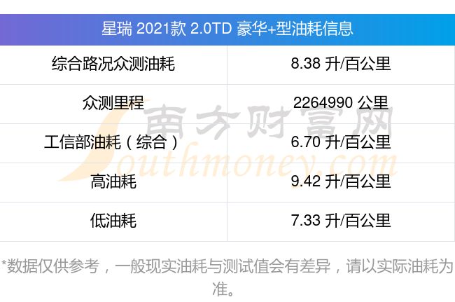 数据仅供参考,一般现实油耗与测试值会有差异,请以实际油耗为准。