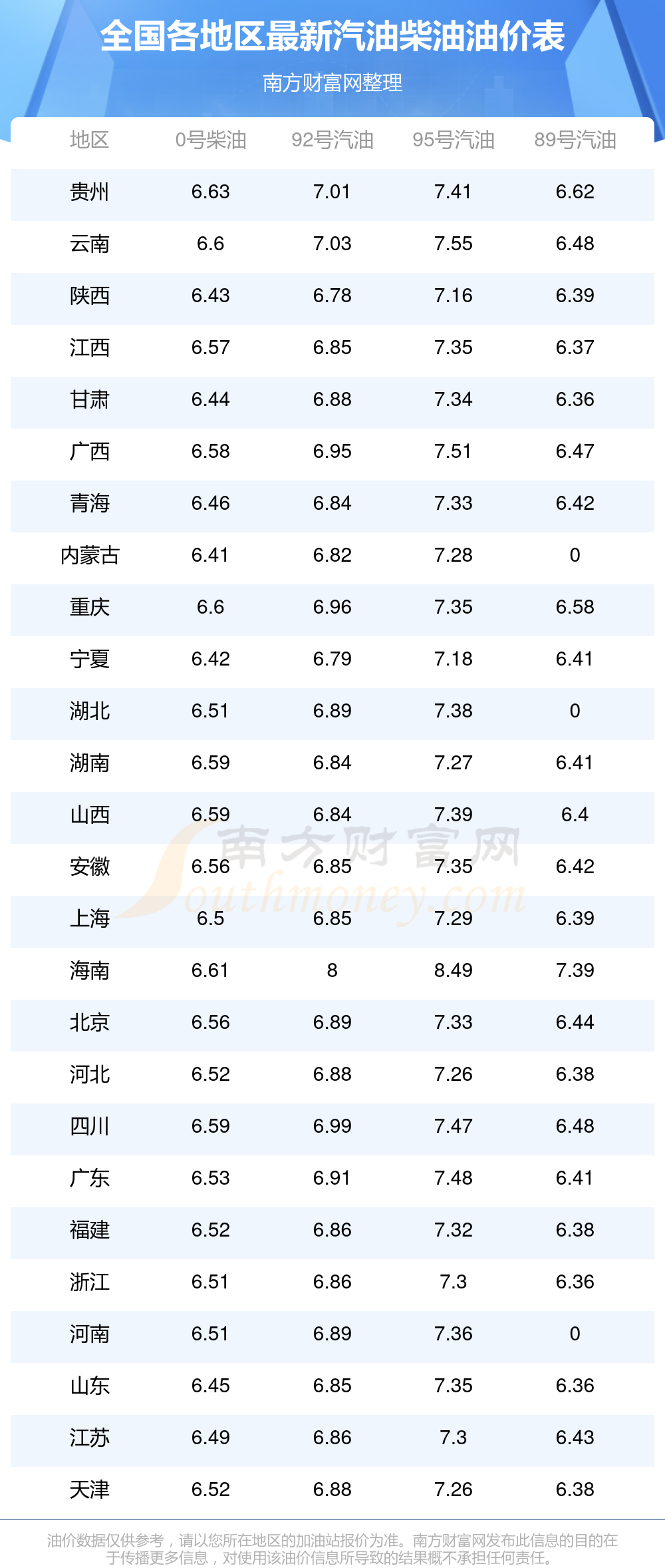 2025年12月7日全国油价调整及最新汽油价格表