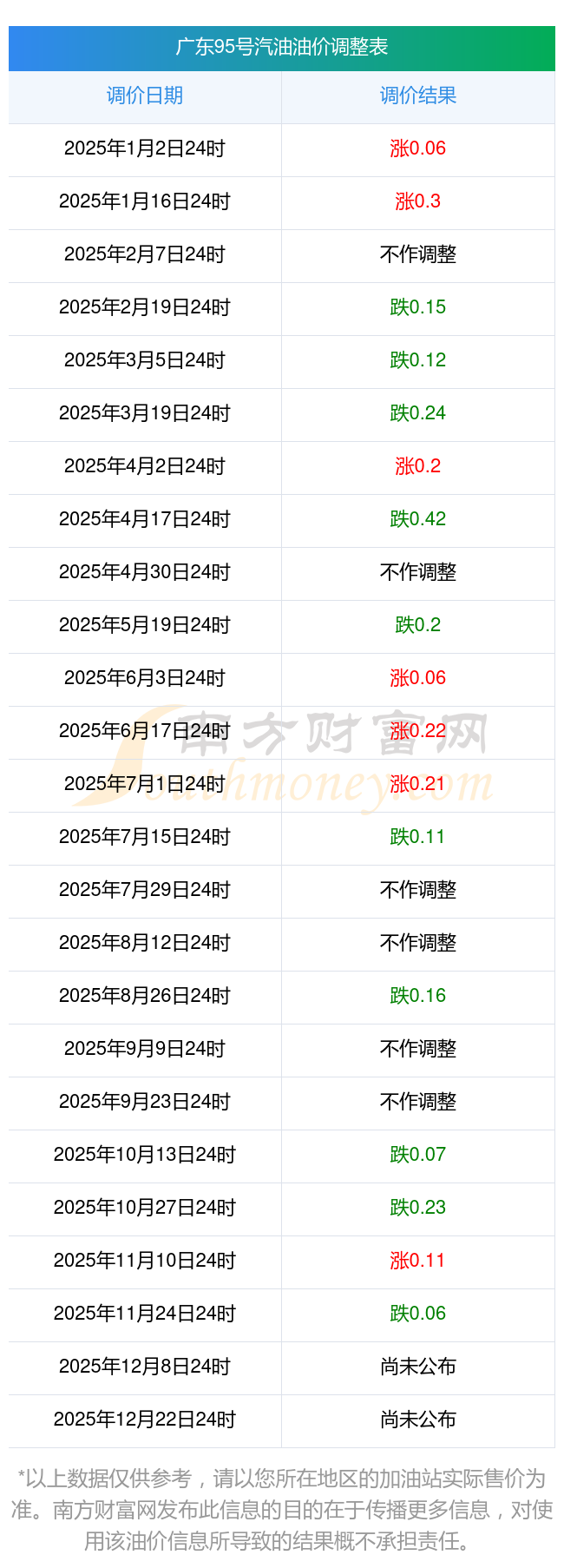 东莞汽油、柴油12月7日的价格是多少钱一升?具体如下:92号汽油为6.91元,减了0.05元;95号汽油为7.48元,减了0.06元;89号汽油为6.41元,减了0.05元;0号柴油为6.53元,减了0.06元,本轮油价的调整时间为11月25日。东莞下一轮油价调整时间12月8日24时,距离现在还有1.29天。