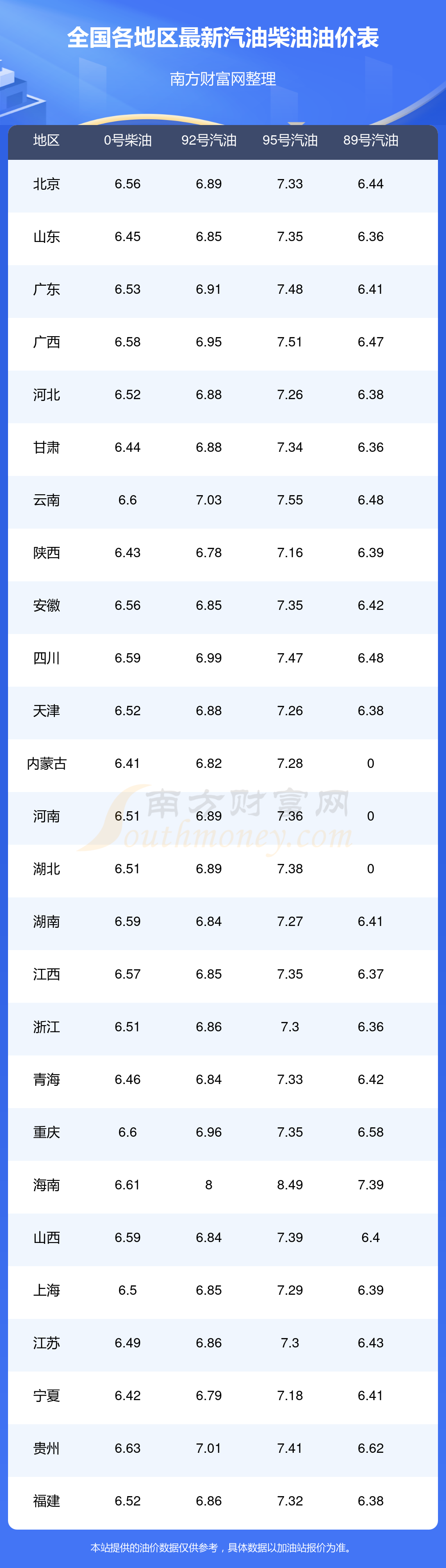 2025年12月7日全国油价调整及最新汽油价格表