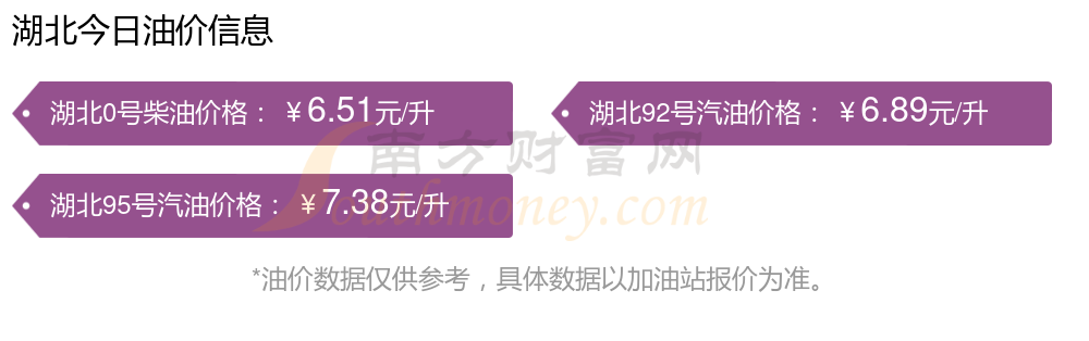 油价调整最新消息:12月7日湖北汽油、柴油每升最新价格多少钱一升?具体为:92号汽油6.89元,下降了0.06元;95号汽油7.38元,下降了0.06元;0号柴油为6.51元,下降了0.06元,本次的调整时间是11月25日。下一轮油价调整时间12月8日24时。