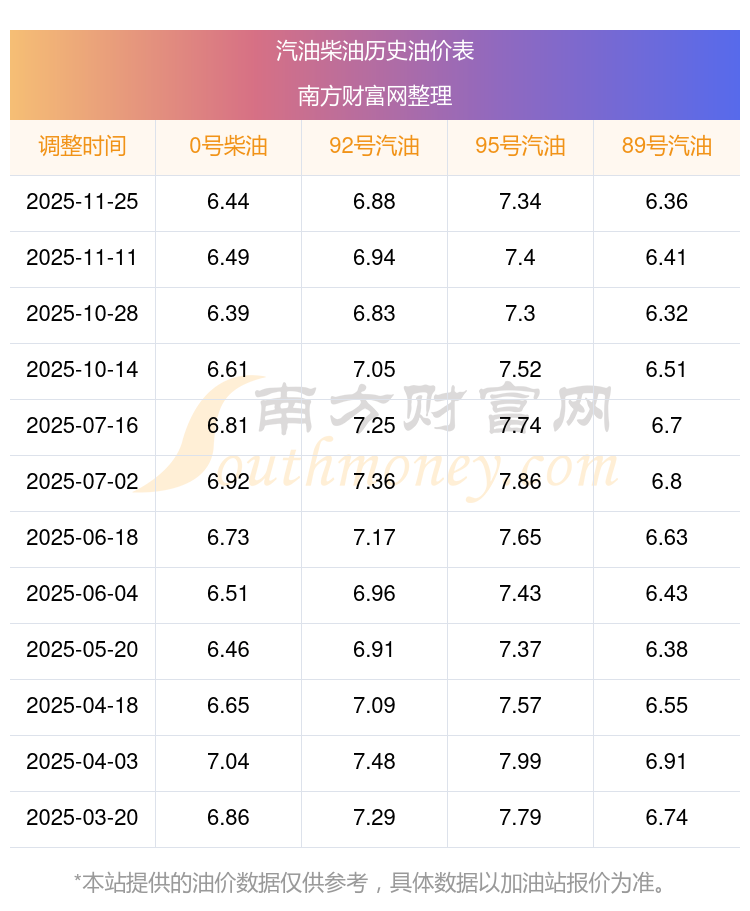 甘肃武威95号汽油12月7日价格查询(11月25日油价调整后的价格):甘肃武威95号汽油7.34元/升,相对上次调整时间11月11日的油价7.4元每升,下降了0.06元,下降0.811%。下一轮油价调整时间12月8日24时,距离现在还有1.26天。