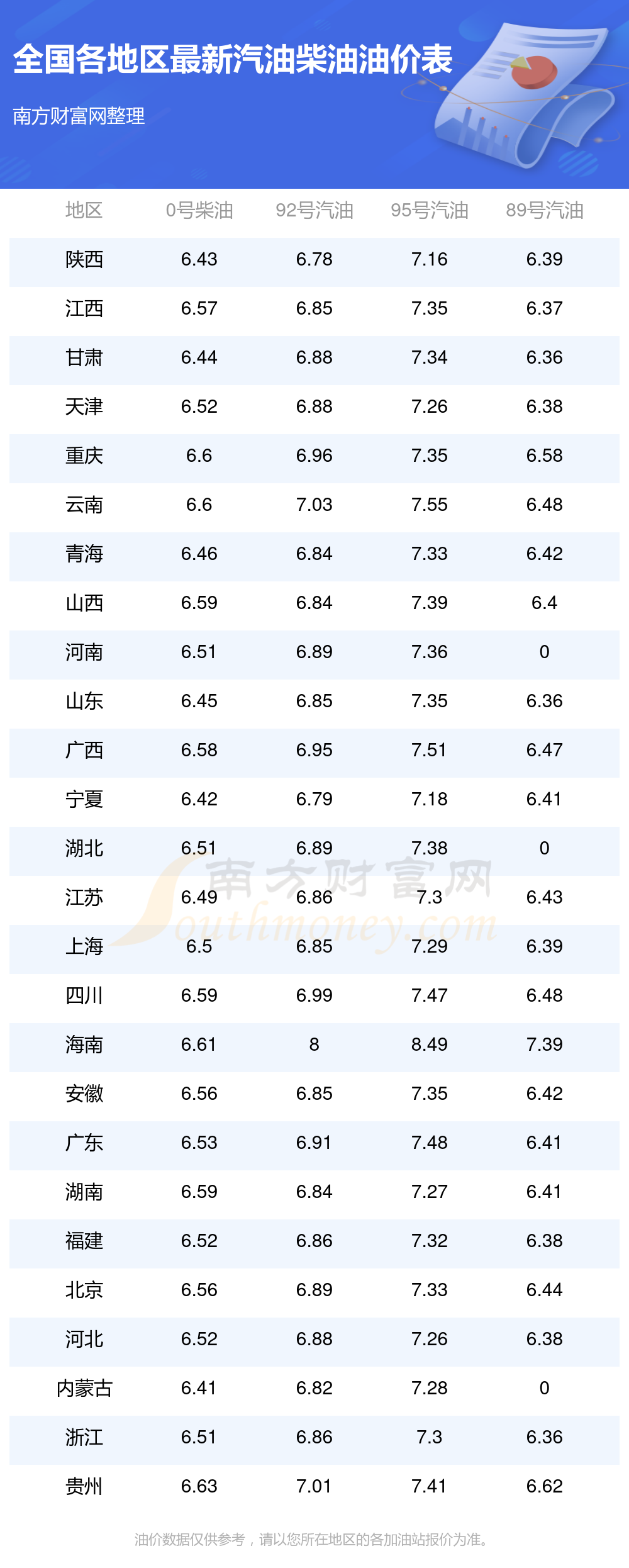 本站提供的油价数据仅供参考,具体数据以加油站报价为准。