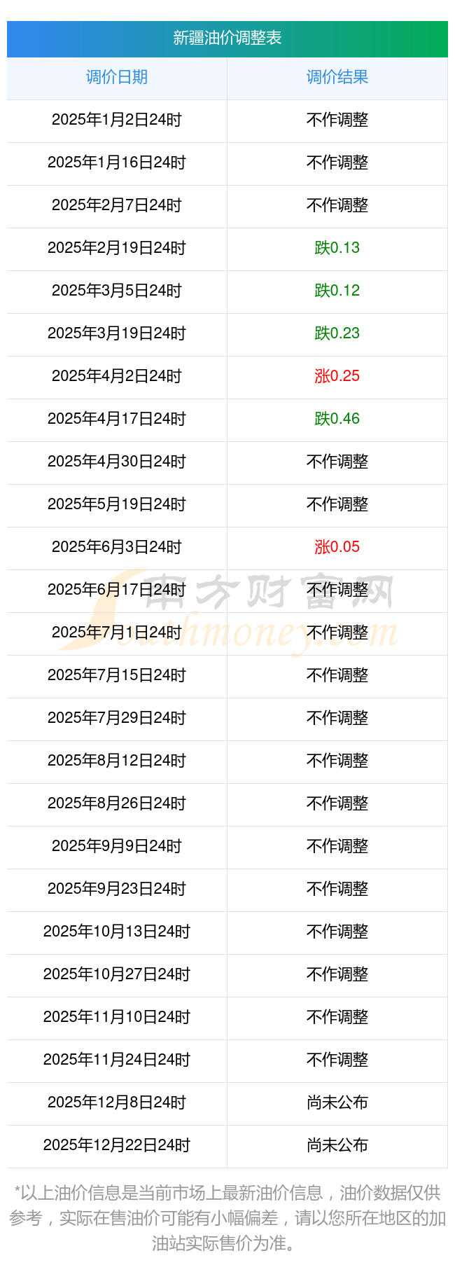 2025新疆乌鲁木齐汽油价格调整最新消息(今天12月7日更新)