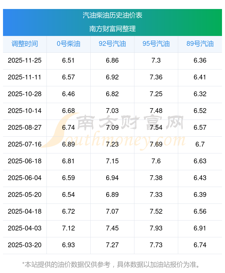 12月7日浙江嘉兴95号汽油价格查询:每升7.3元(11月25日油价调整后的价格),相对上次调整时间11月11日的油价7.36元每升,降了0.06元,降0.815%。下一轮油价调整时间12月8日24时,距离现在还有1.23天。