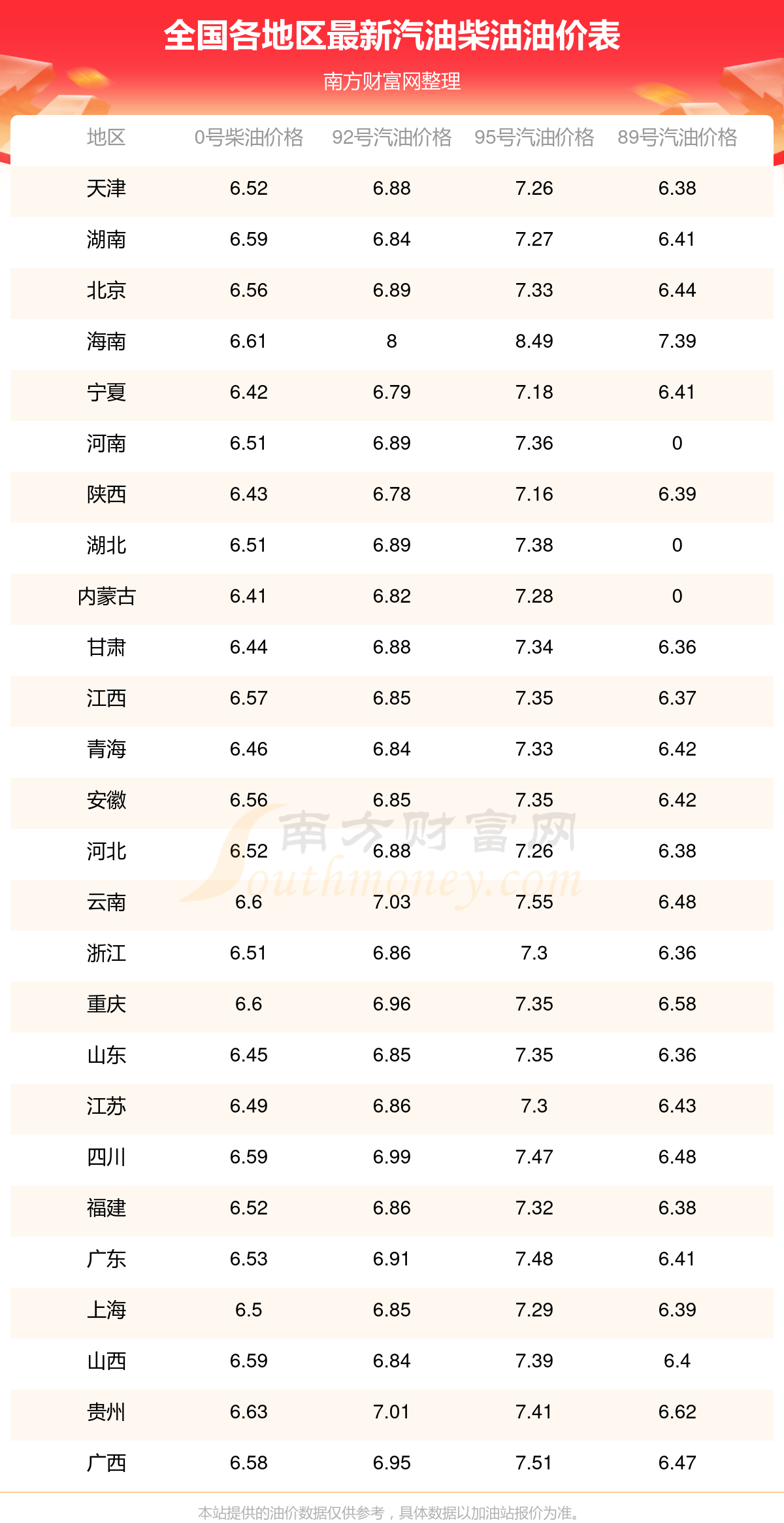 本次油价调整的时间为11月25日 ,调整后全国油价具体为: