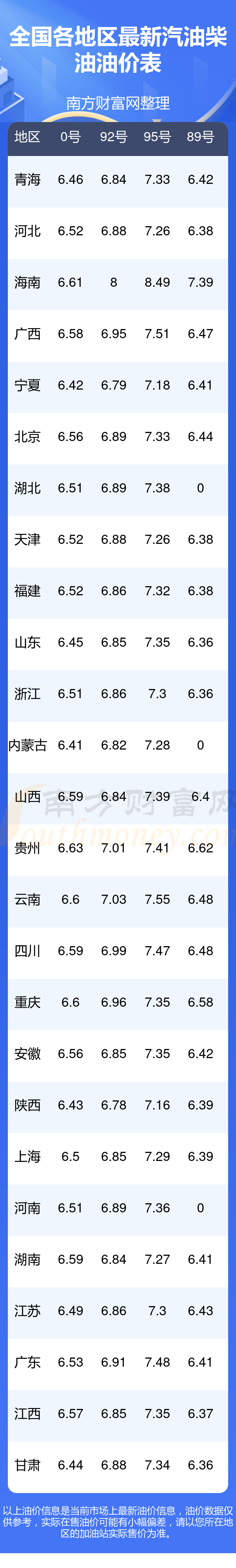 油价数据仅供参考,请以您所在地区的各加油站报价为准。