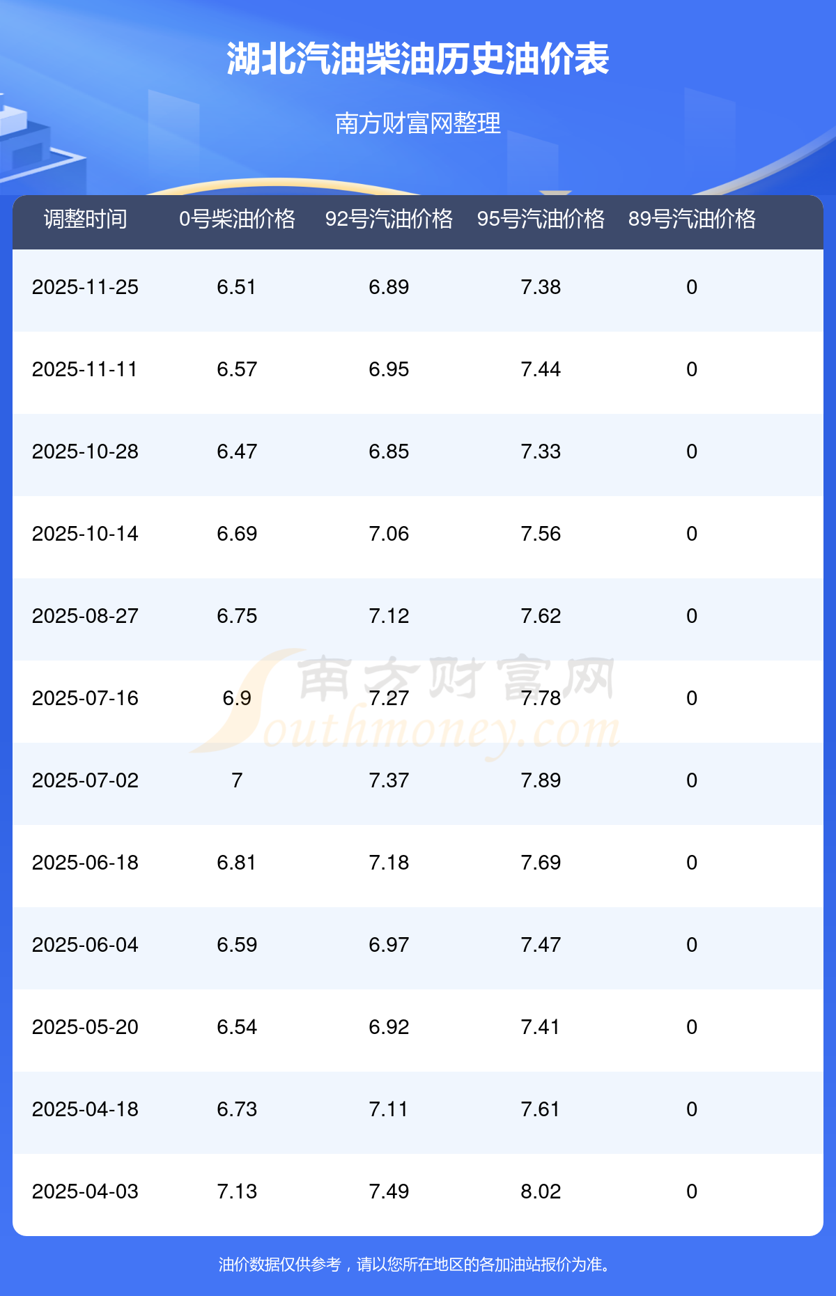 2025年湖北汽油价格一览表