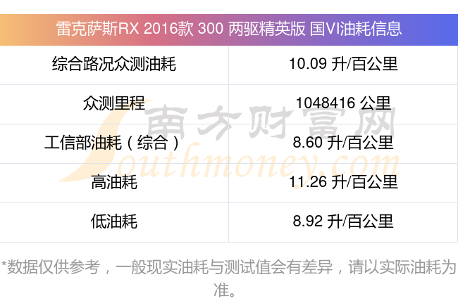 根据多位车主实测得出数据,该车型低油耗为8.92L/100km,高油耗为11.26L/100km,综合路况众测油耗为10.09L/100km,工信部综合油耗为8.60L/100km。