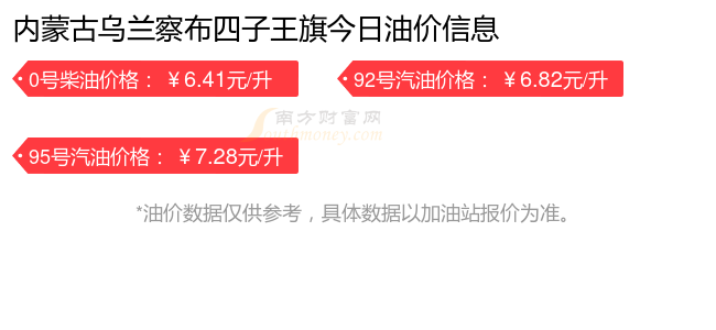 12月7日内蒙古乌兰察布四子王旗汽油每升的价格,具体如下:92号汽油6.82元;95号汽油7.28元;0号柴油6.41元(该价格为11月25日调整后的价格)。