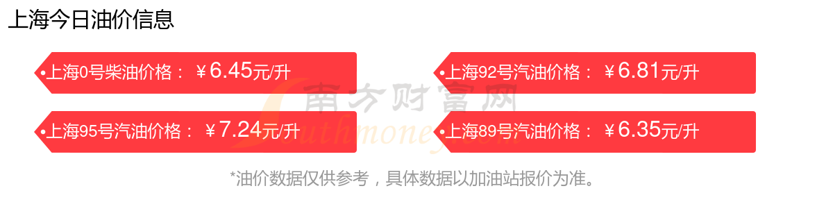 12月13日上海汽油柴最新油价是多少?具体每升为:12月9日调整后,92号汽油为6.81元,下降了0.04元,下降幅达0.58%;95号汽油为7.24元,下降了0.05元,下降幅达0.69%;89号汽油为6.35元,下降了0.04元,下降幅达0.63%;0号柴油为6.45元,下降了0.05元,下降幅达0.77%。下一轮油价调整时间12月22日24时,距离现在还有9.22天。
