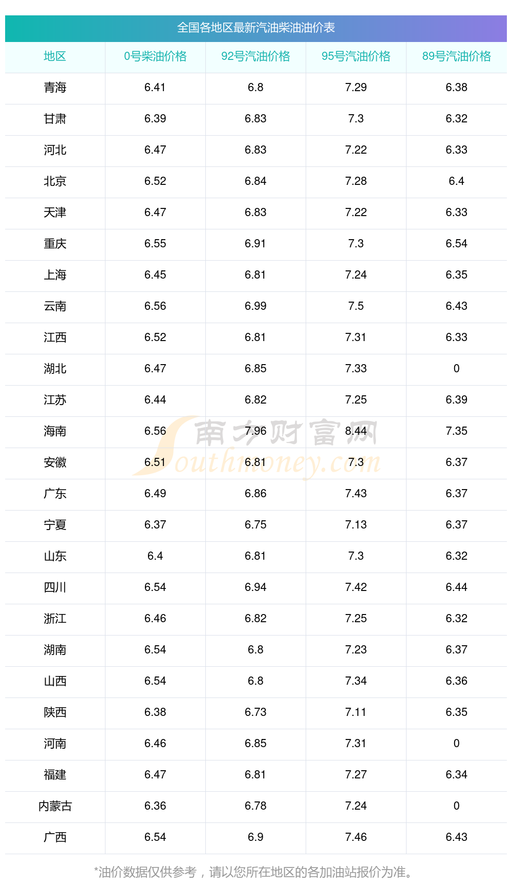 本次油价调整的时间为12月9日 ,调整后全国油价详情如下: