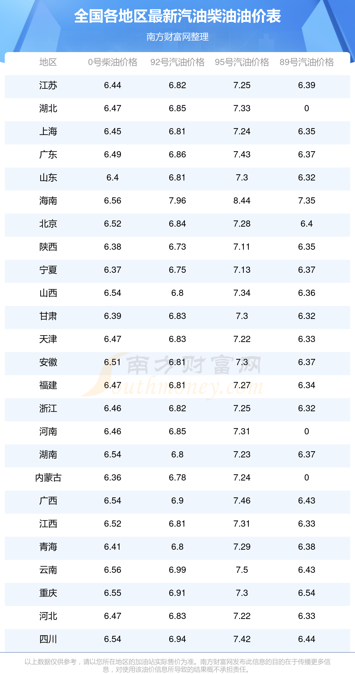 2025年12月13日全国各地油价调整及最新汽油价格表