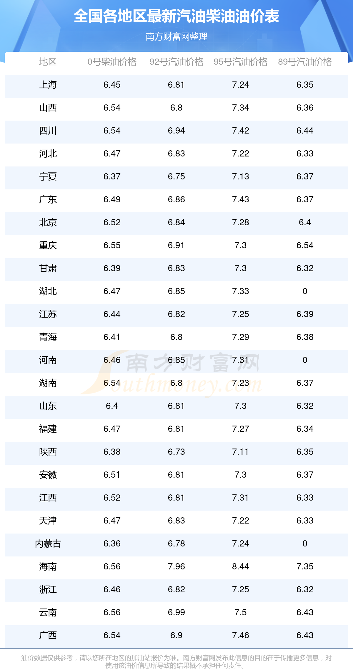 本站提供的油价数据仅供参考,具体数据以加油站报价为准。