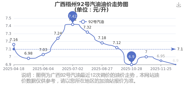 汽油、柴油12月13日每升最新价格:92号汽油为6.9元;95号汽油为7.46元;89号汽油为6.43元;0号柴油为6.54元,本轮油价调整时间为12月9日。