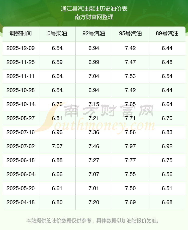 2025年通江县油价调整时间表